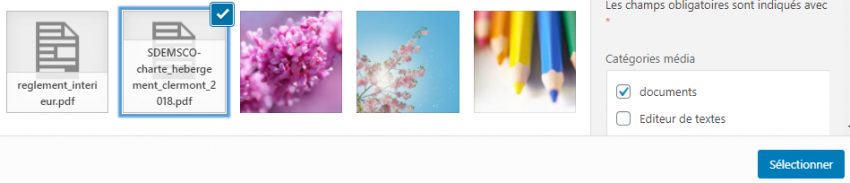 Cliquer dans le champ pour ouvrir la bibliothèque de médias.