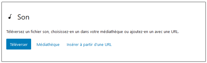 Le bloc Son propose trois manières d’insérer un fichier audio :